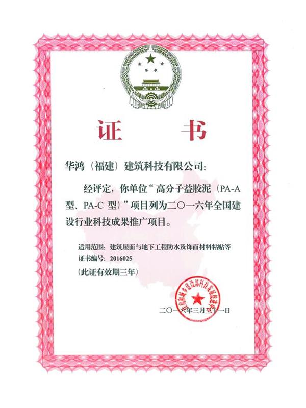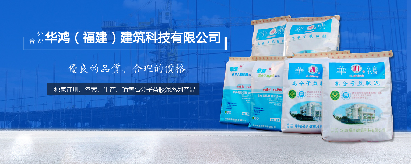 中外合資華鴻(福建)建筑科技有限公司創建于 1995 年,是中國建筑學會 、建設部科技發展促進中心建設科技理事會、中國建筑裝飾協會、中國建筑學會施工與建材學術委員會防水技術專業委員會會員單位。公司引進國外先進的“Polymer-modified cementitious mixtures(水泥基聚合物改性復合材料)生產技術,利用進口原料在國內獨家注冊、備案、生產、銷售高分子益膠泥系列產品。公司檢測手段先進,生產設施配套齊全,擁有先進的進口復合材料生產線,從試驗研究、產品開發到技術應用都能配套地推出工業化科研成果及產成品,具有完善的科研、生產、質保、銷售及售后服務系統。公司廠區距鐵路線 1 公里,與京福高速公路相鄰,交通十分便利。現可年產高分子益膠泥系列化產品 10 萬噸。